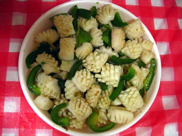 鱿鱼炒的一点也不晶莹水灵…不过味道调的不错, 比较满意了~
