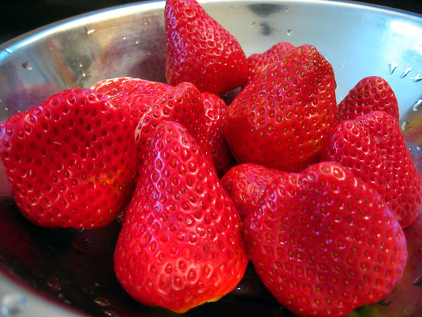但是昨天买的Dole牌的一小盒草莓不仅巨大(每个都至少跟婴儿拳头一样大!), 而且非常甜. 幸福地照下来作纪念(-__-……)