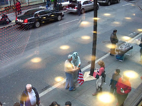 各大百货商店都有那种非常fancy的音乐橱窗, 里面有极其漂亮的布景和活动的人偶. 其中以3*街的Macy的为最, 6个橱窗都布置的美轮美奂,吸引了无数目光 (点击看大图:D) :