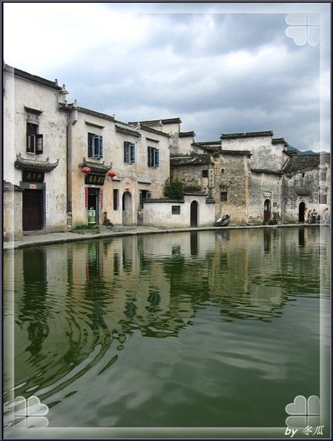 宏村之中最著名的一景, 半月形的水塘…不过没照全, 一半因为相机镜头不够宽, 一半因为人实在太多了, 所以俺索性竖起来照了…
