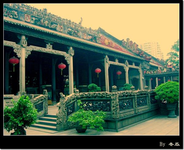 By 冬瓜, on 12 6 月, 2006 昨天去了陈氏书院, 又叫陈家祠, 好像是清朝光绪年间建的. 非常精致的雕刻, 华丽的厅堂连廊, 严谨的建筑结构. 俺拣了点边角, 用软件做了一下图 可惜俺没拍出很能反映完整的房屋庭院风貌的图…