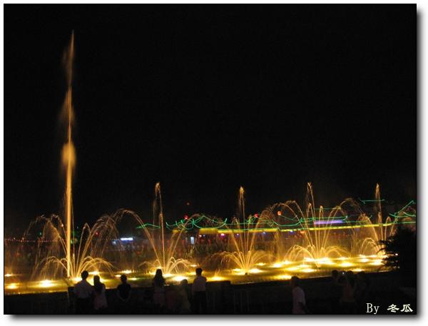 入夜, 市中心的广场上音乐喷泉成为一道著名景观. 据说最高喷到82米, 有”亚洲第一喷”之称. 不过俺拍不下来那个巨高的, 只好拍点小水花.