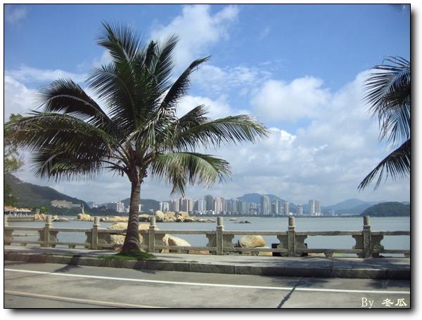 珠海是个非常干净漂亮的城市. 看多了广州的灰天和混乱交通, 再看到珠海清爽的蓝天白云和相对空旷的马路实在觉得很美好. 可惜的是搭别人的车只能匆匆浏览一番情侣路的景色, 没有机会自己下车走走.