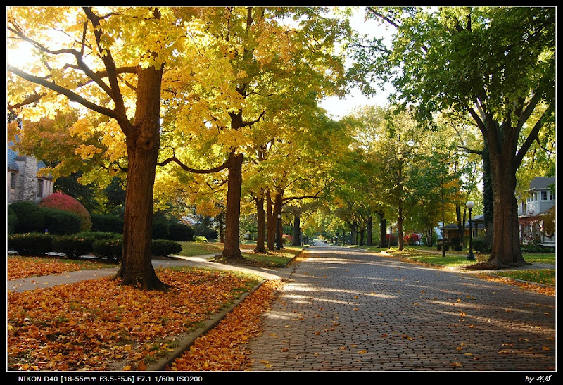 回town里抽空天气好半个下午去了前年练车印象中的金色大道. 仍然早了点. 不见橙红. 可是第二天就又开始淫雨霏霏阴冷阴冷的了, 所以这半个下午还是及时的.