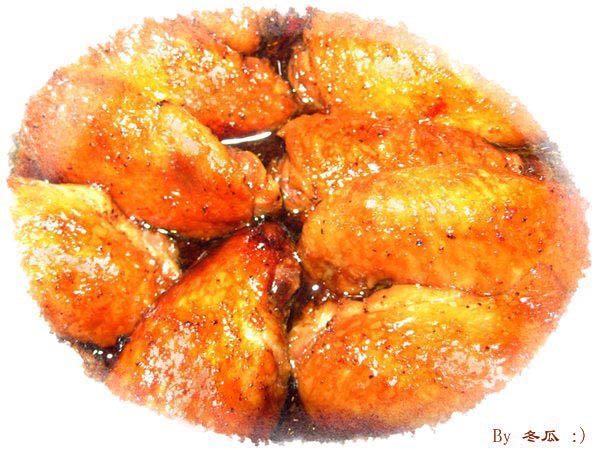 用了闪光灯而且没从烤盘里捞出来, 所以鸡翅看起来油油的, 实际上一点也不油