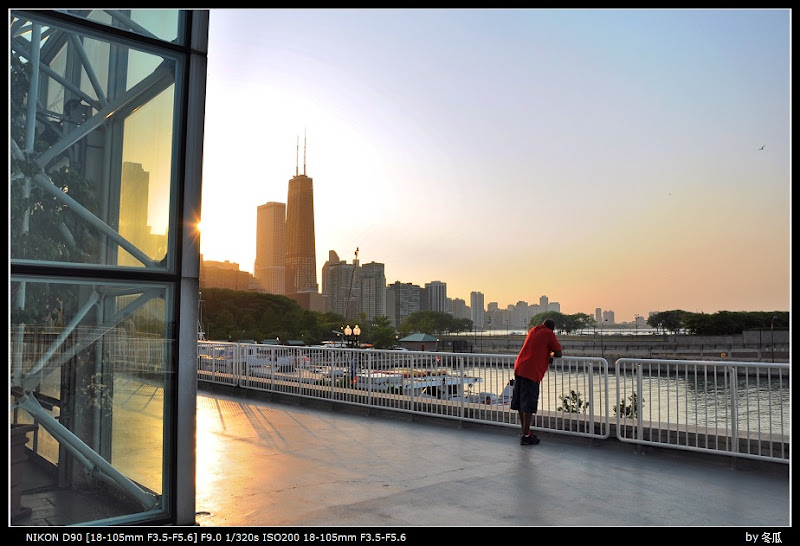 为了防止人多被警察限制进入焰火观看地点Navy Pier, 我和朋友决定下午6点就过去守着, 等待9点开始的焰火. 然而人山人海, 简直热气蒸腾. 想去买点吃的垫肚子, 结果一看排队都如同长龙, 只好放弃了. 朋友决定在室内呆着, 我就四处绕了绕, 毕竟难得(?)来一趟chicago么.绕到building背面, 观看焰火的反方向, 出乎意料的竟然十分空荡,在看了一天万头攒动的景象后着实有点落差.
