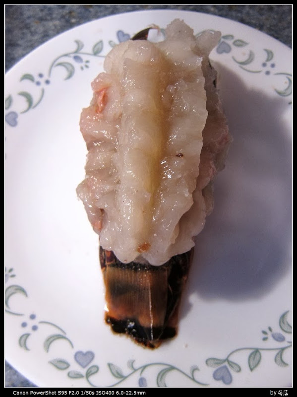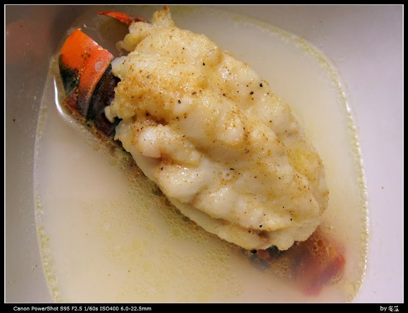 但是切开一尝, 真是火候正好口味绝佳, 龙虾本身的鲜甜爽口加上butter等的香味实在不错. 我一分钟就把整个小尾巴吃光了, 决定以后要是再碰到打折一定要再买…