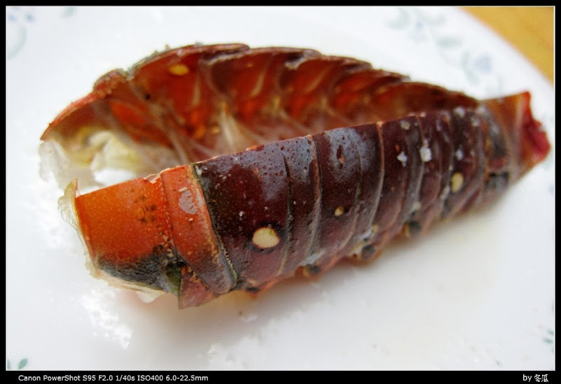 话说我一两年前也有一次趁打折时财大气粗地买了一个大龙虾尾巴回来, 然后直接丢锅里水煮了, 最后吃起来好似一块发苦的橡皮, 让我大失所望.