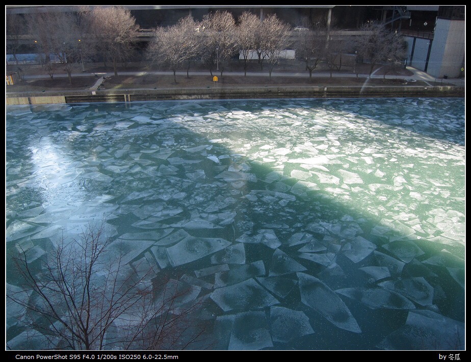 刚到芝加哥的头两天正是最冷的两天,走之前温度才回升了一点,河里的冰迫不及待化了
