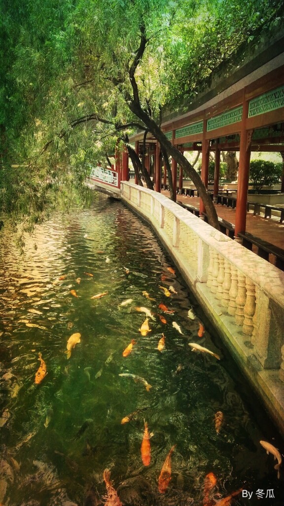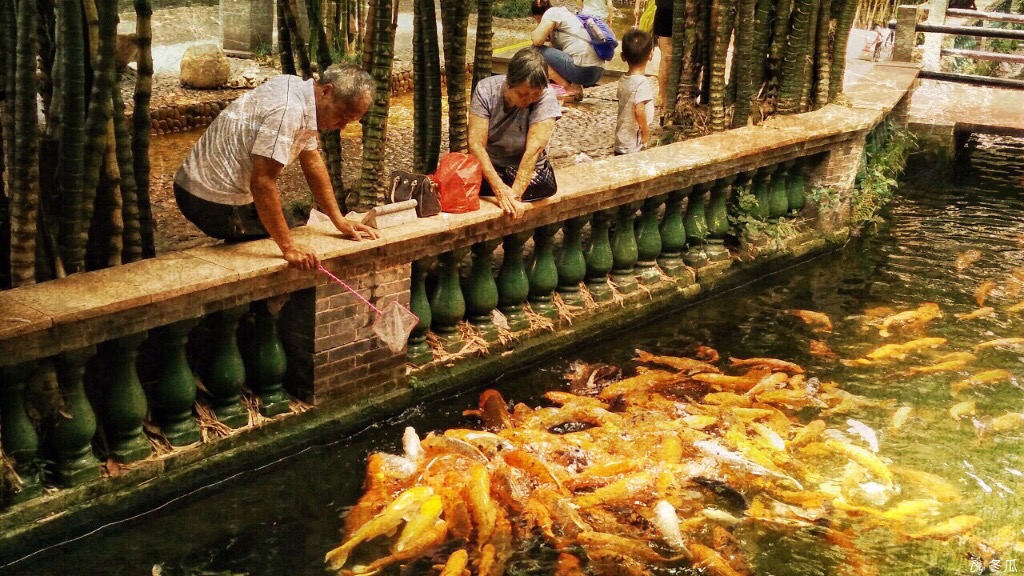 整个园子作为夏日游玩地实在很棒:有精美的水榭楼台假山石桥各色花卉植物可看;有满园的九曲回廊和遍地绿荫可休憩乘凉;有遍布全园的湖泊池水,各色锦鲤游曳其中,还可以坐上小船吹吹风;有小型艺术馆可参观;有给孩子们戏水捞鱼的地方,甚至有个小游泳池可供成人泡泡水;园中有几处价格相当正常口味也不错的粤菜馆和甜品馆;甚至园中的厕所都令人惊喜,不仅异常干净,而且连每个隔间的门都是两扇对开的仿红木雕花门,简直豪华……