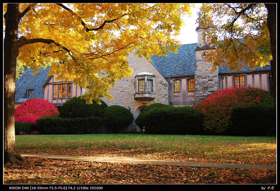 再之前,大概是我印象中秋天最漂亮的一年。有开车穿过小镇时看到仿如童话里房子般的景象: