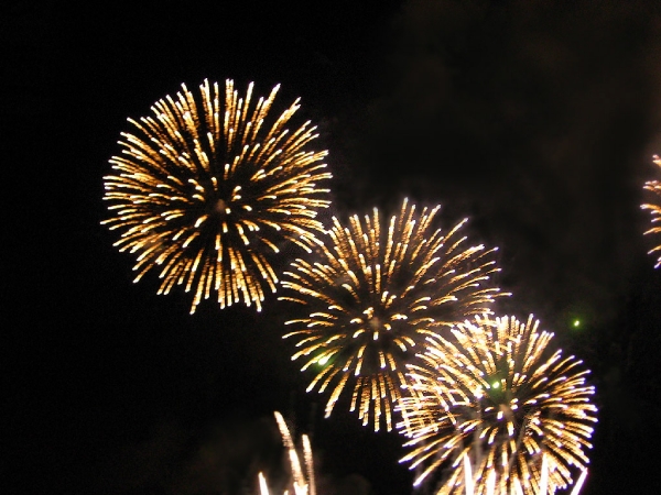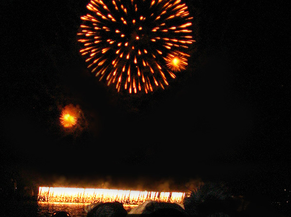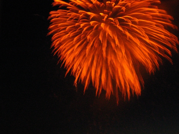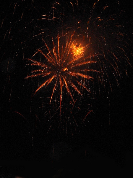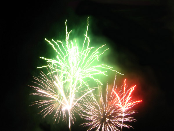 Canon的照相机lag真不是盖的, 照烟花的时候基本上按快门到它反应过来基本漫天的烟花都散了, 只剩下一团团云雾, 想按下一张还得再排队等5秒才能动, 连打时间差都打不起来, 如果要闪光那更是几十秒红绿灯乱闪作一团, 到终于大放光明的时候天上什么都没有了…不禁联想起了当时mud里某某神功发动之后还没打中人家却只有lag在那里十几秒活活等死的心情. 不过我也不大懂得什么技巧, 所以下场就是照焰火按了100多张除了烟雾就是鬼火和激光状不明爬行扭曲射线的效果.害我还自己没好好看成, 真亏. 不过感觉今年的焰火没有去年的那惊艳了……之前等的太久, 提前n个小时千辛万苦人挤人人踩人地在沙滩上找地方坐下来, 而真正放焰火的时间又太短.