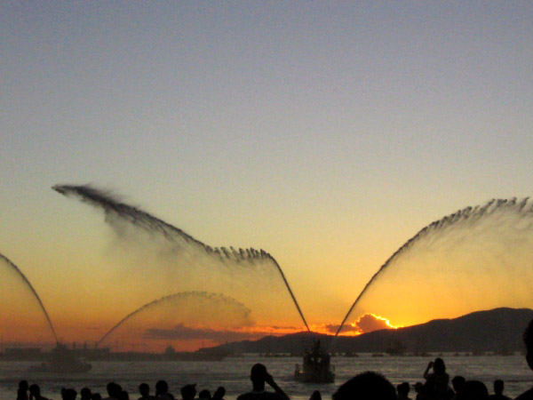 下面亮闪闪的那排是放焰火的船. 这张照片是把中间的黑色部分都剪掉了…否则太长.