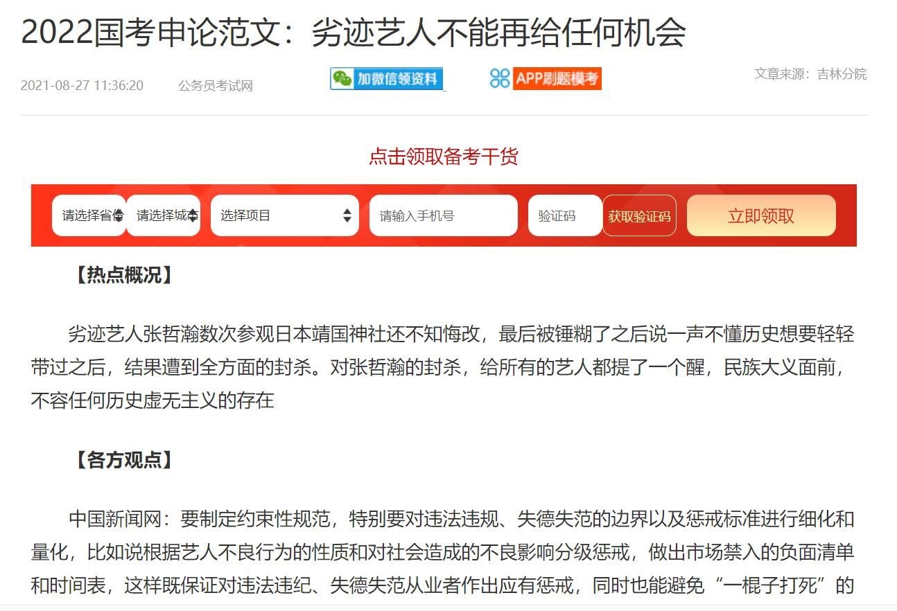 文章中,这位韩记者不仅将张与因偷税受到惩处的郑爽、涉嫌强奸受到批捕的吴亦凡、因涉嫌性侵解约的钱枫、因嫖娼被刑拘的李云迪并列,而且提到钱枫、李云迪等人时均一句话带过,涉及张时却绘声绘色,画风突变:不仅详细描述张是“借 耽改剧”“蹿红”而短暂“跻身‘顶流’”的,而且将其三年前在个人社交媒体发表的旅游照称为其“两年前 高调曝出 的照片”,并且用词十分技巧地定义了令张与文中其他“违法失德”艺人并列的罪行:“参观靖国神社,会见疑似日本右翼人士,触及民族大义之底线” ———— 一位虽然完全没确认过事实,但必须要先扣上一个令人敬畏的帽子、然而又不把话说太死以避免被追责的老练法制新闻工作者的形象跃然纸上。