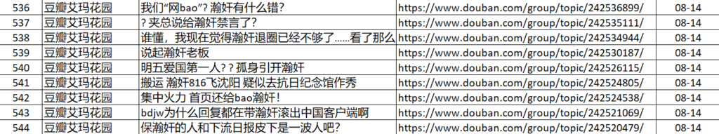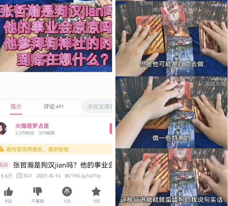 在包括微博、豆瓣、哔哩哔哩(bilibili视频网站,简称b站)、抖音、快手等在内的全部网络平台,除了痛骂和批斗“瀚奸”的内容外,张的相关帖子与相关视频、音频作品在几天内被全部删光;